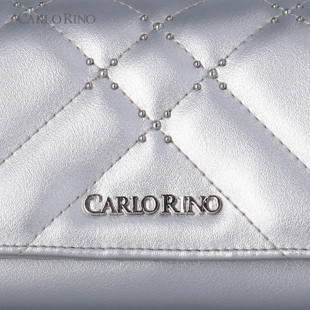 Classic and versatile, this bi-fold wallet in chic silver showcases the timeless quilted pattern enhanced with gem accents. Designed for effortless organisation, it’s a staple accessory with a touch of sparkle.