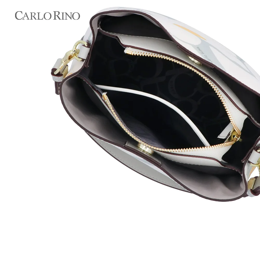 This bucket bag presents an elevated take on a timeless staple.Featuring a baby-blue floral print, it pairs a roomy interior with a sleek profile.The detachable crossbody strap provides versatile carry options, and its secure top closure keeps your belongings safe.