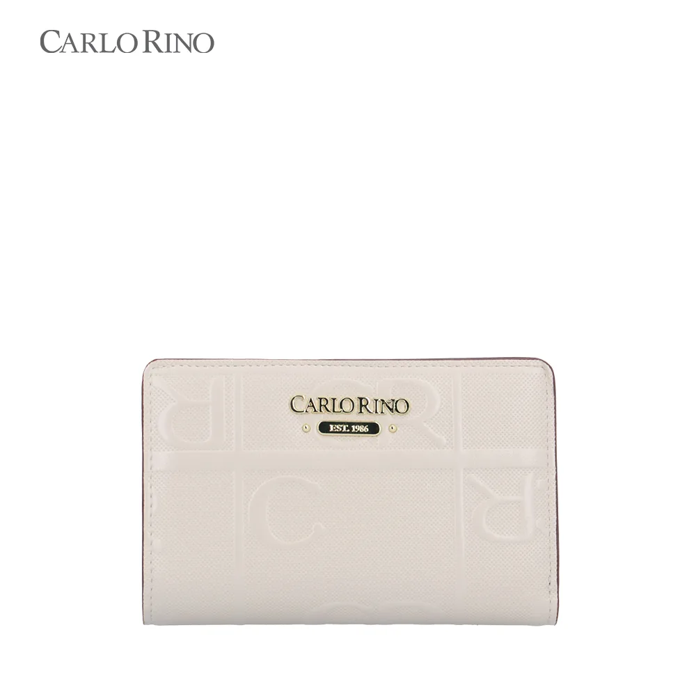 Neat and chic in clean beige, this short bi-fold wallet keeps your essentials in order with ease. Detailed with our monogram and accented by a pink metallic heart charm, it’s a sleek companion that fits right into your bag — or your palm.