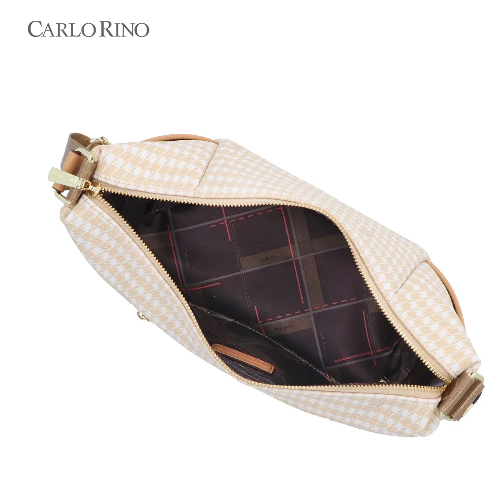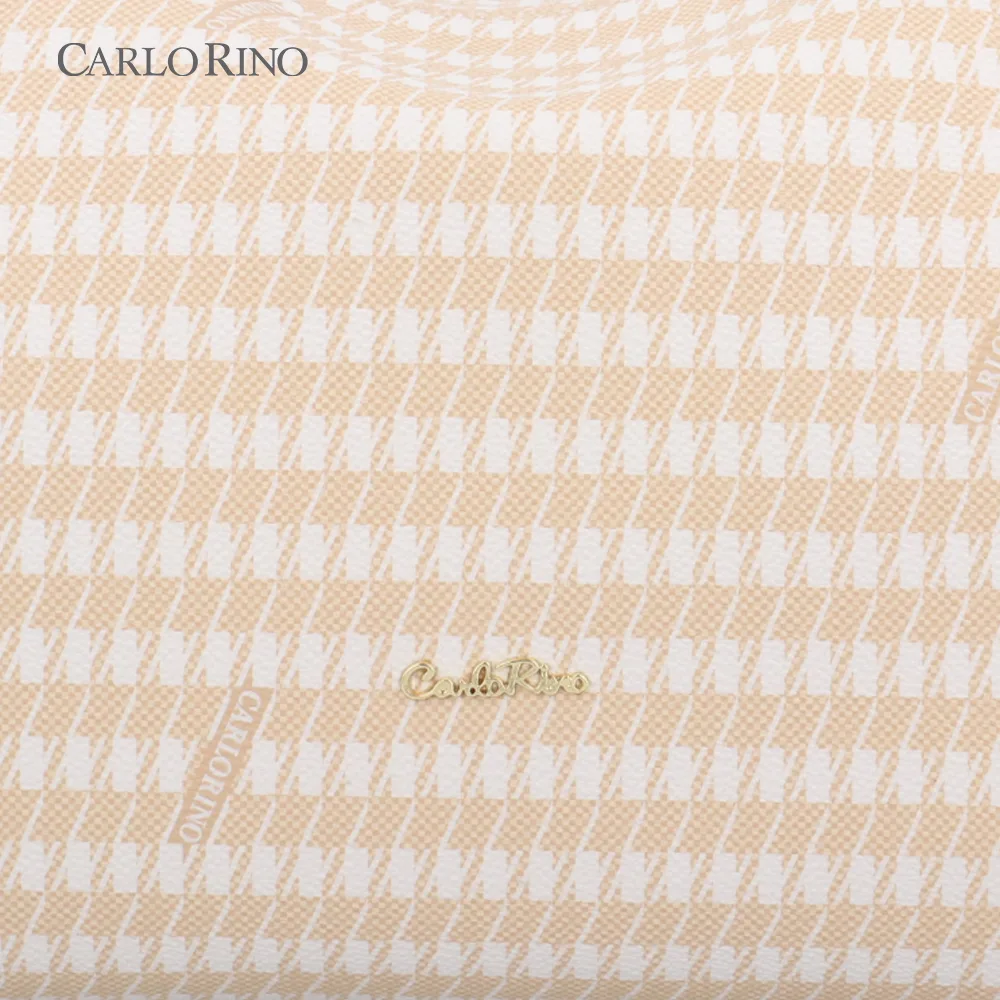 Spacious yet stylish, this tote bag in signature printed coated canvas combines a beige-and-white houndstooth pattern with light brown accents. Perfect for everyday wear with a timeless, sophisticated touch.