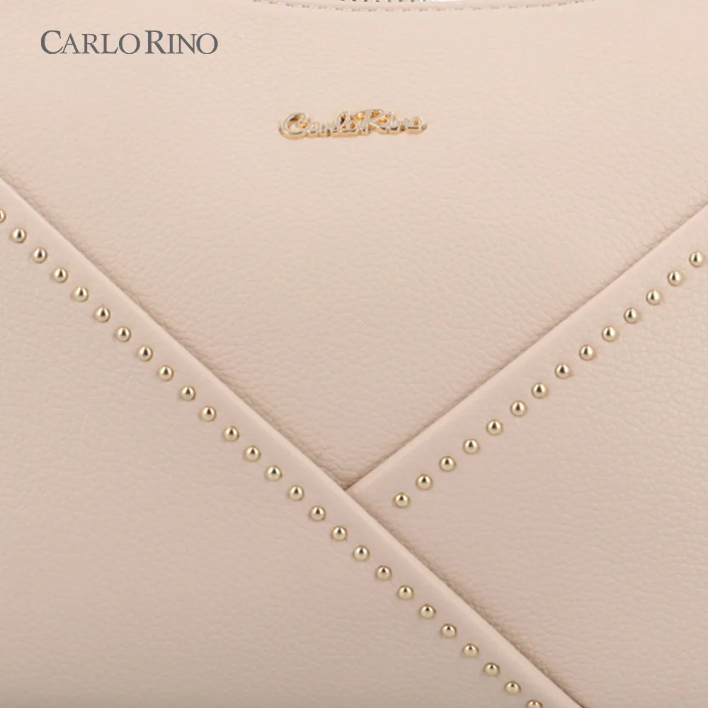 Elegant and charming, this 2-way shoulder bag features criss-cross stitching accented with delicate gems and a half gold chain, perfect for day-to-night wear.