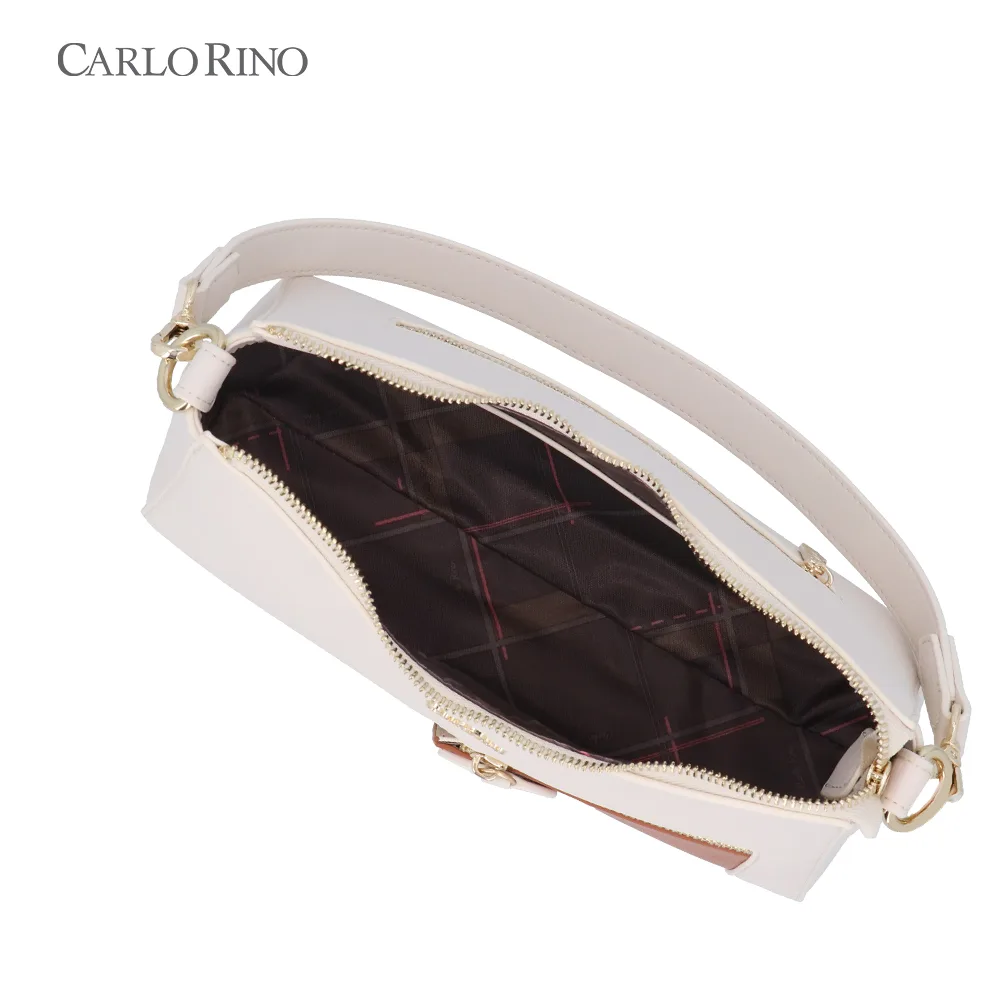 Effortlessly chic, this 2-way shoulder bag combines creamy white with brown accents and adjustable straps, offering versatile shoulder or crossbody styling for a timeless look.
