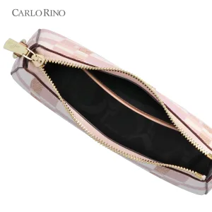 This collection features a delicate checkered designed in soft pinks, neutrals, and a hint of blush for a touch of reimagined refined elegance. The bags pairs beautifully with light-toned outfits and relaxed knits, while gold-tone accents add an elevated touch to the overall fit.