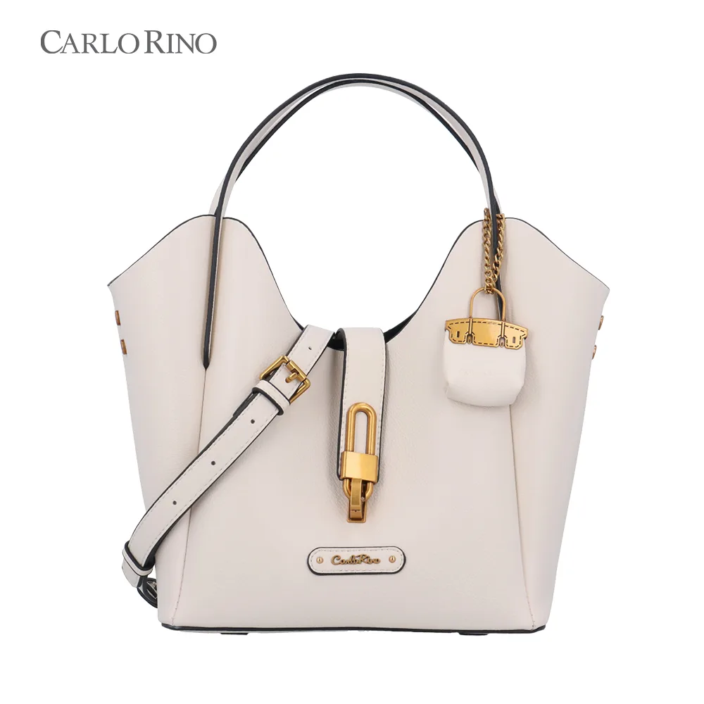 Chic and playful, this top handle bag comes with a mini bag charm of its own, gold hardware, and a detachable long strap for flexible wear. Available in three colours, it’s a stylish companion for any occasion.