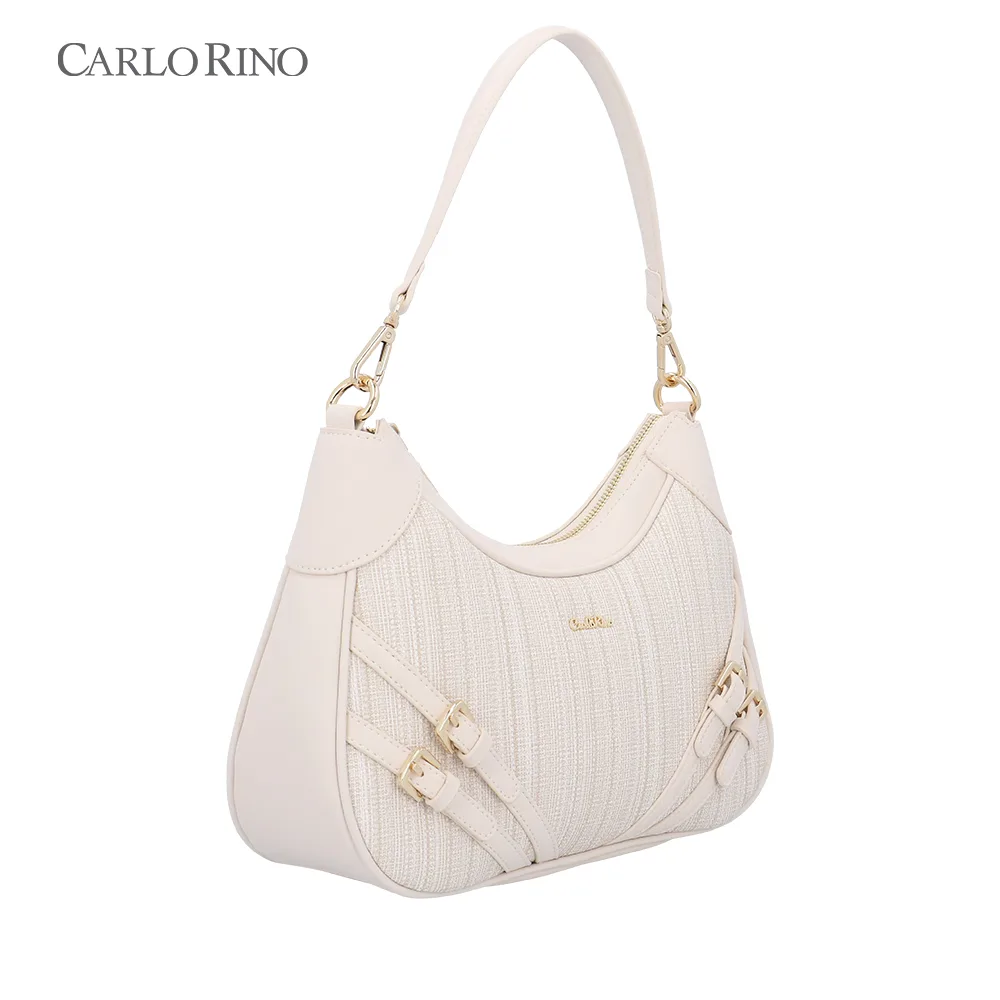 Spacious and stylish, this tote bag captures the essence of cosy sophistication. Its beige textured synthetic leather evokes a knitted feel, giving off a soft charm. The design is elevated with diagonal buckled straps on each side for subtle detailing. With its roomy interior, it’s the ideal bag for carrying everything you need while staying effortlessly chic.