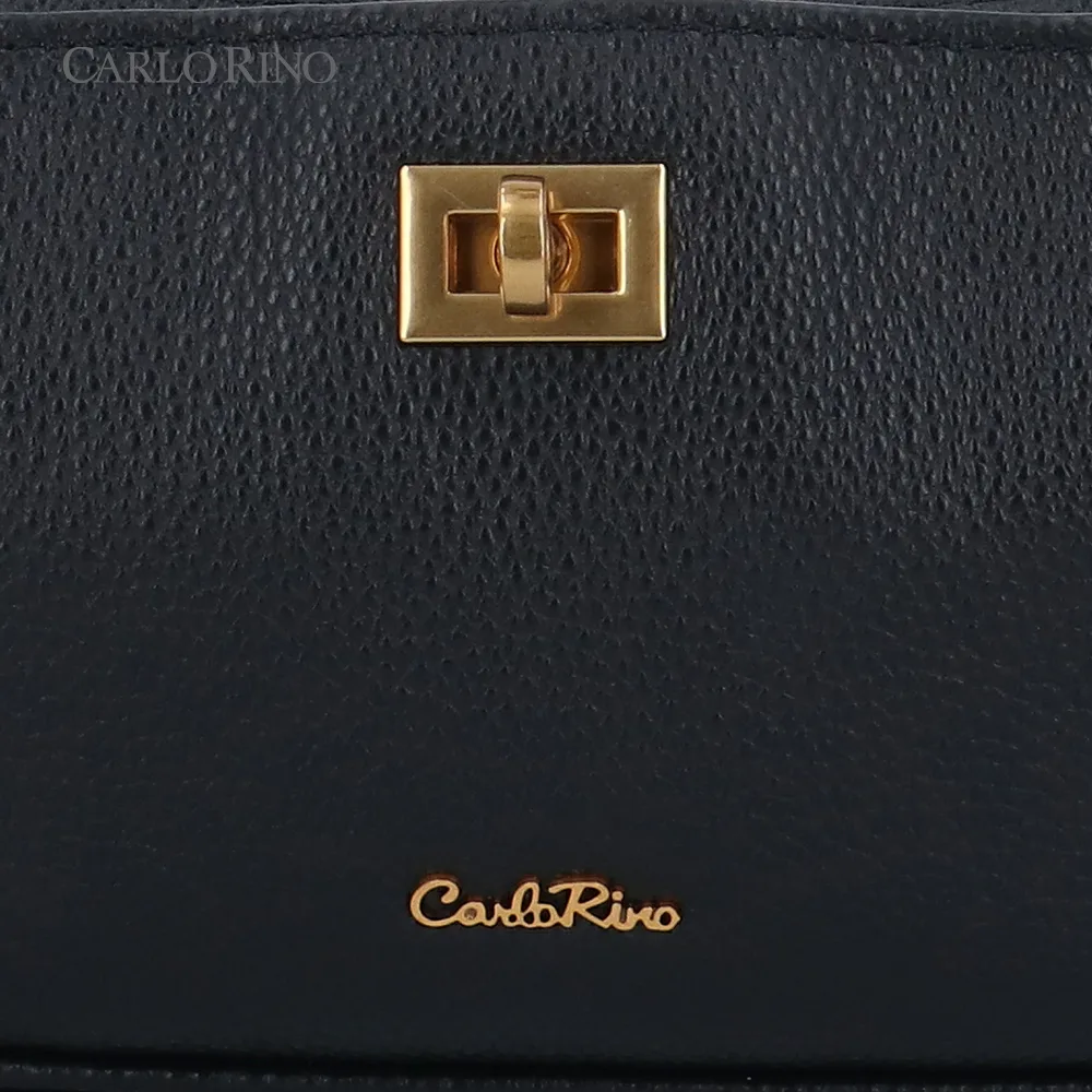 Sleek and versatile, this black cowhide leather shoulder bag features a gold clasp and an additional detachable long strap for effortless styling. Timeless elegance meets everyday functionality.