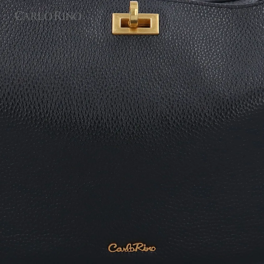 Chic and sophisticated, this black cowhide leather tote is finished with gold hardware and a secure clasp. Perfect for elevating your everyday look with a touch of luxury.
