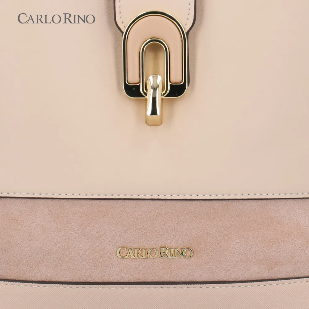 Crafted from smooth synthetic leather with a soft suede accent, this top handle bag features a tall, structured silhouette designed for a wider fit — perfect for keeping your essentials neatly organised. The sleek flap with a gold clasp adds a touch of timeless sophistication, making it a versatile choice from workdays to weekends.
