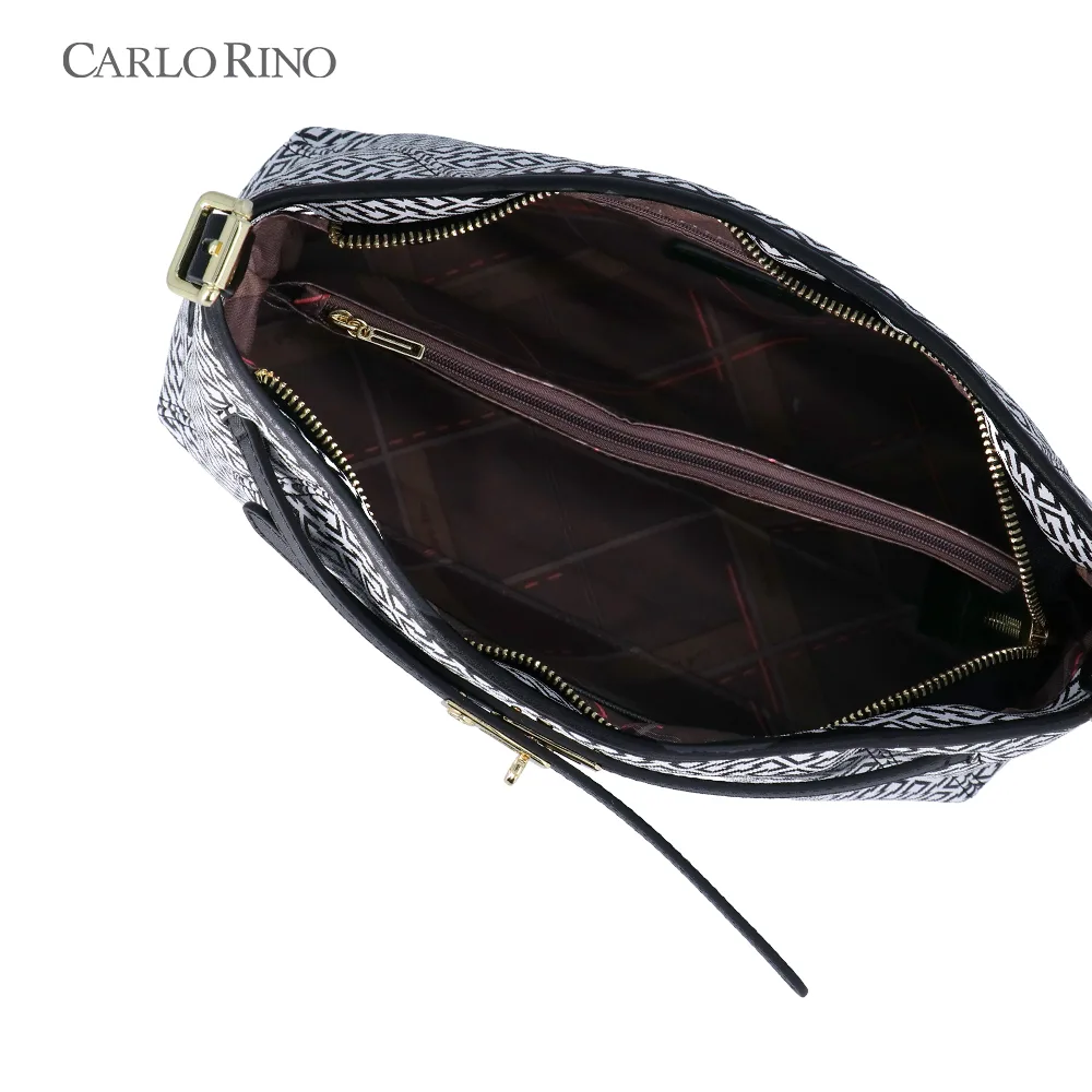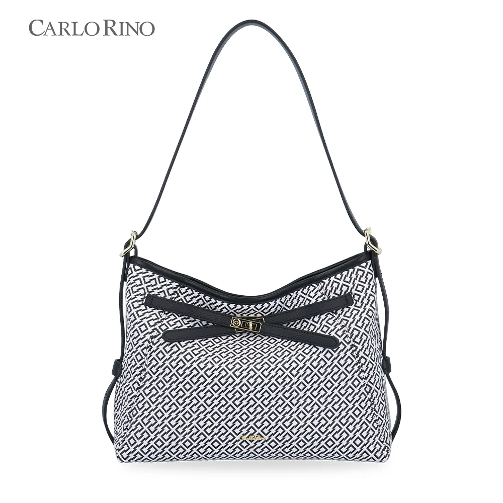 The Eloise Tote Bag balances practicality with feminine detail. Designed in coated canvas with a striking monochrome geometric print, this roomy tote is finished with a dainty bow strap accent — adding a touch of playfulness to its timeless preppy style.