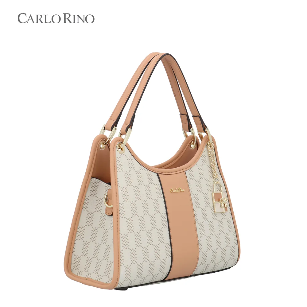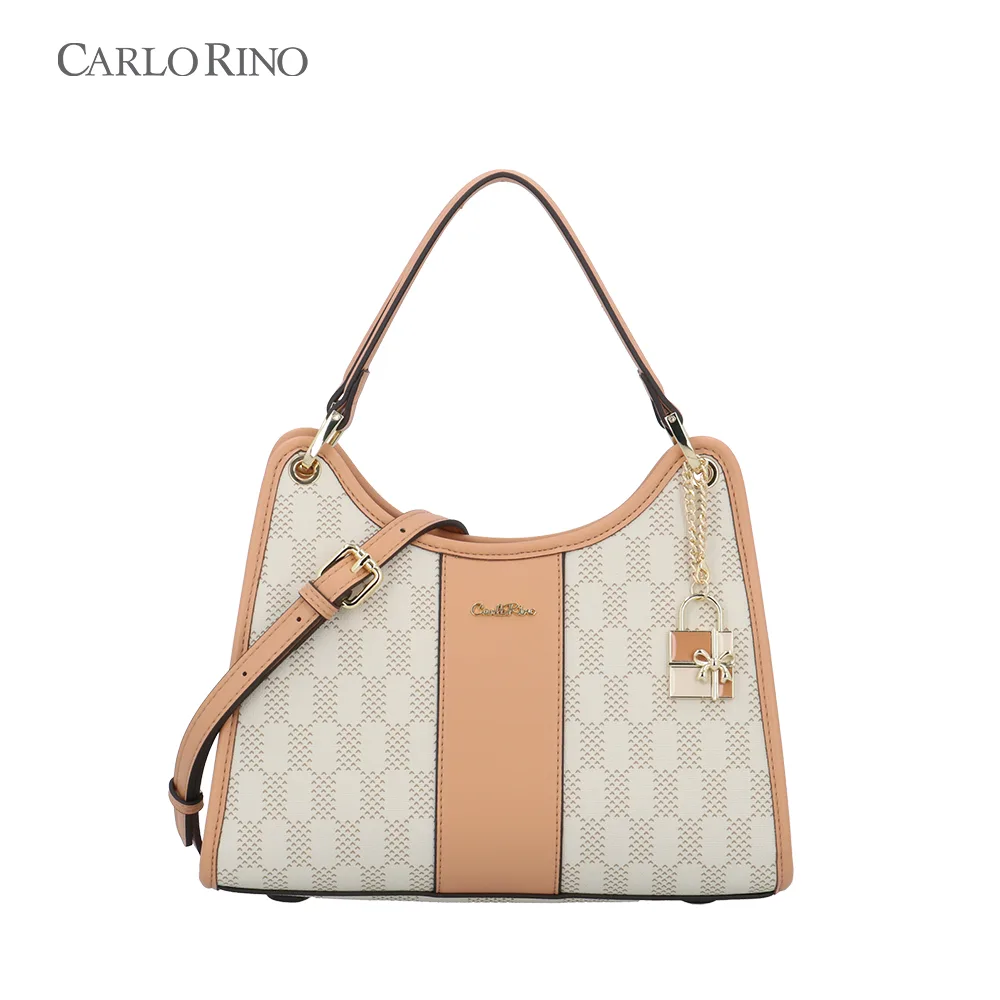 This structured top handle bag pairs clean lines with a charming mini heart checkerboard pattern. Complete with a detachable long strap and a cute locket charm, it’s both polished and playful.