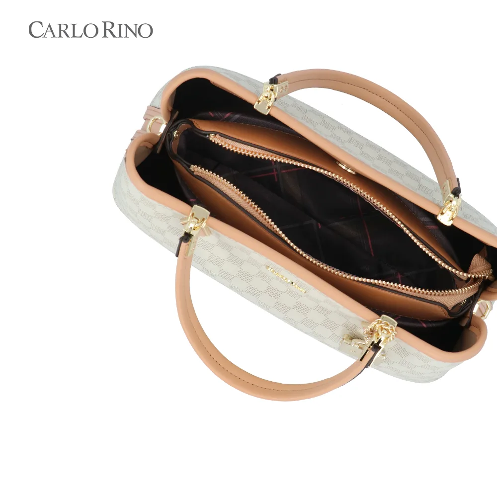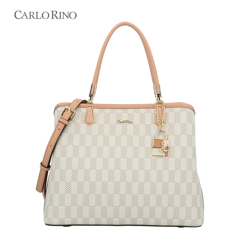 A refined top handle bag with a defined, structured shape and a coated canvas heart checkerboard finish. The detachable long strap and locket bag charm make it an elegant yet sweet everyday companion.