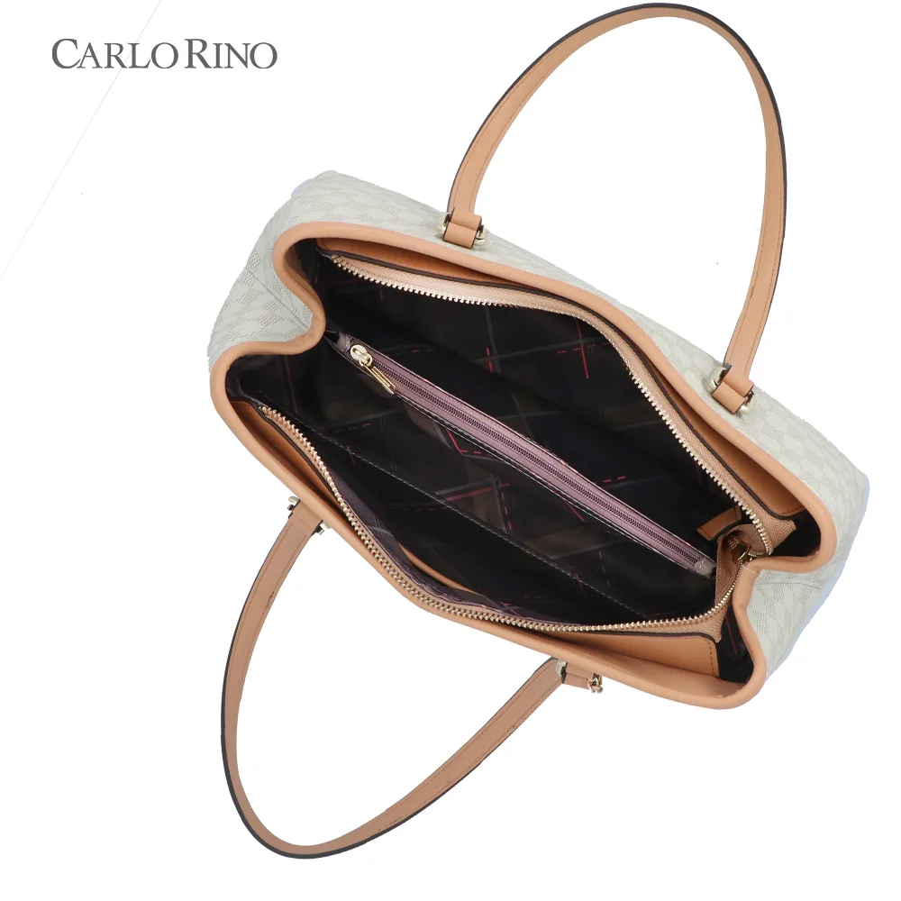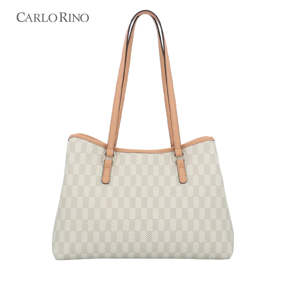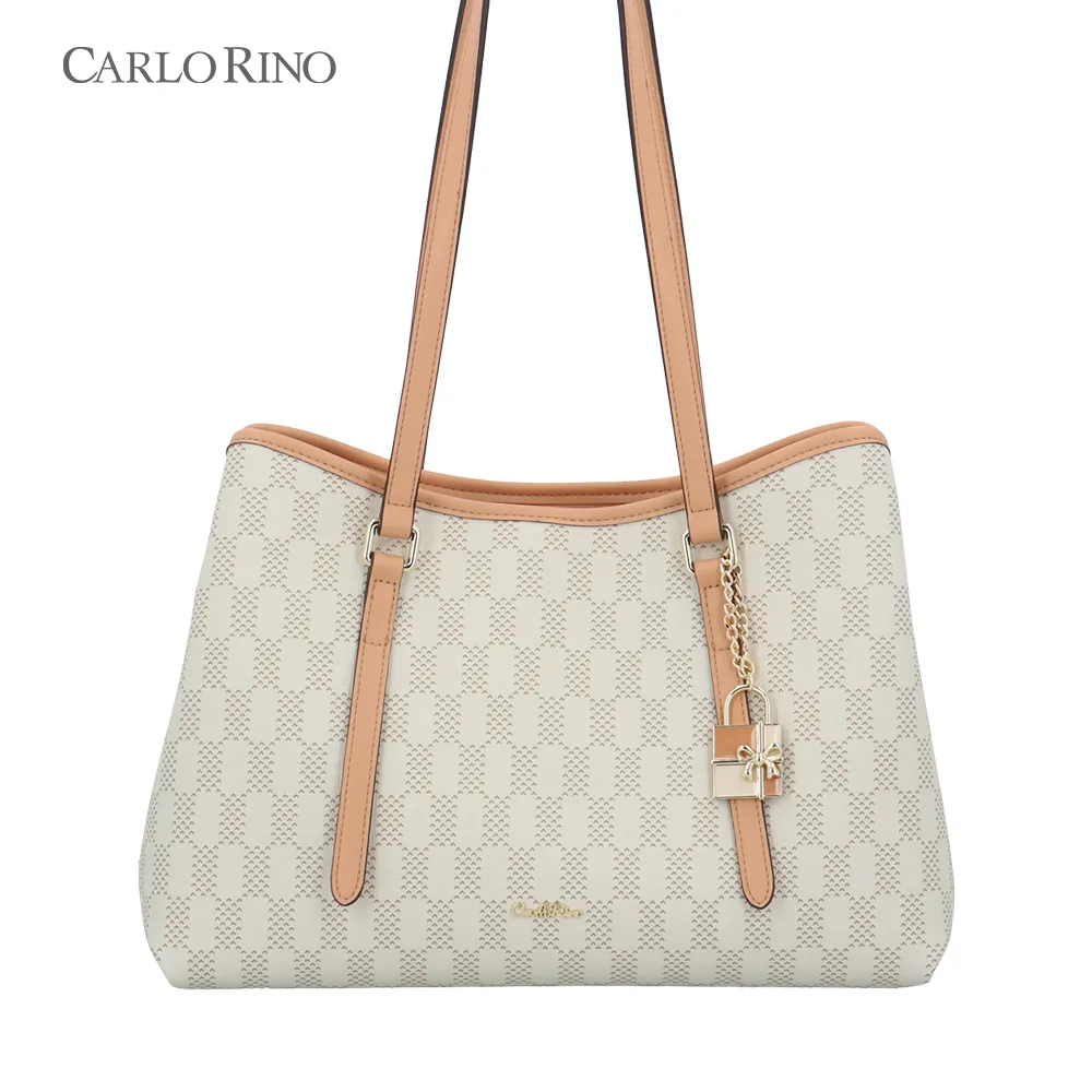 A spacious tote made from coated canvas featuring an eye-catching mini heart checkerboard design. Lightweight yet durable, it’s perfect for carrying daily essentials in standout style.