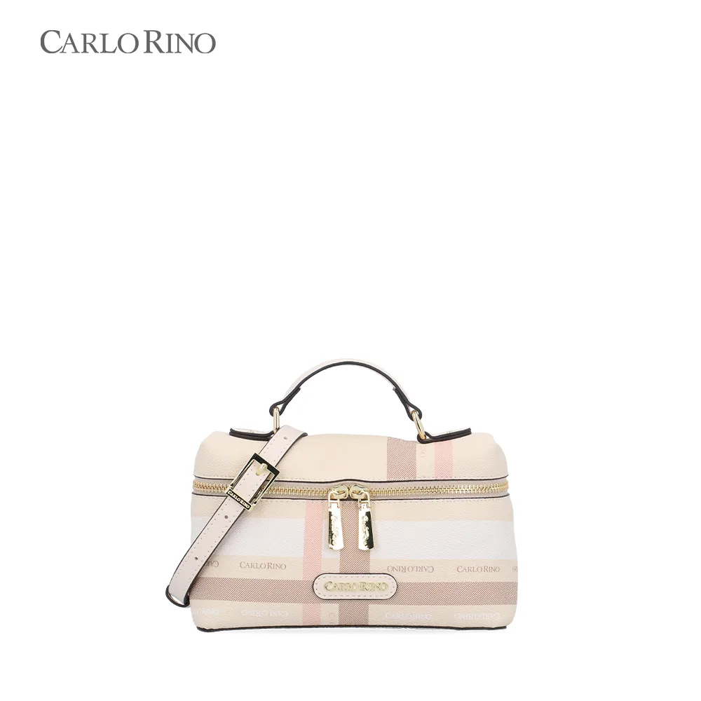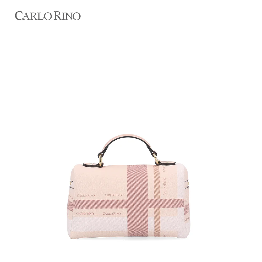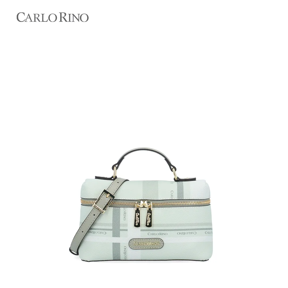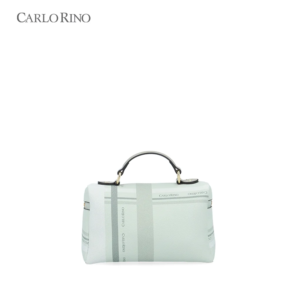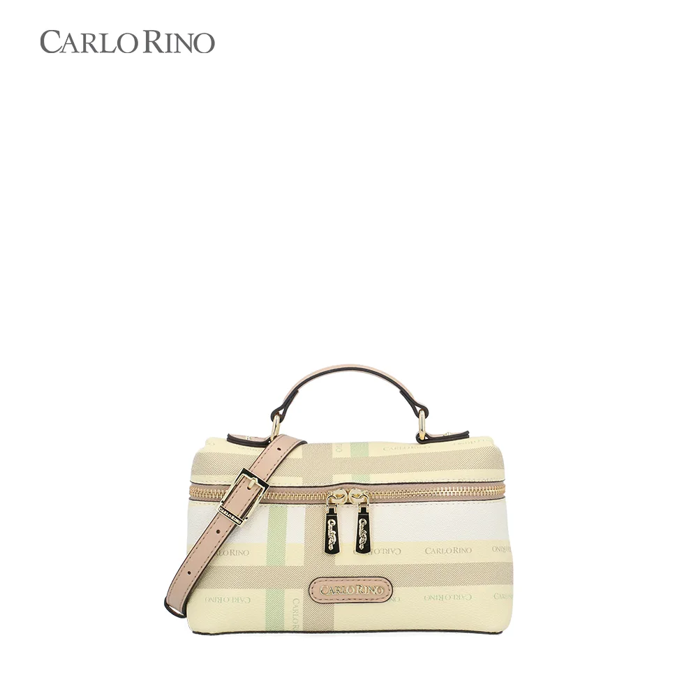 A structured box bag crafted from signature printed coated canvas, finished with a pastel-toned checkered pattern. Designed with a firm silhouette and a detachable long strap for polished day-to-night styling.