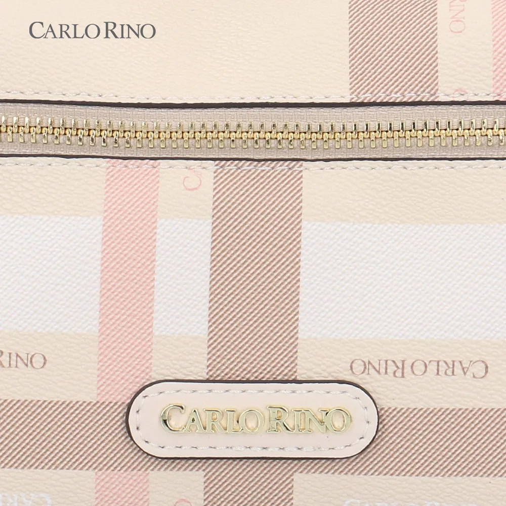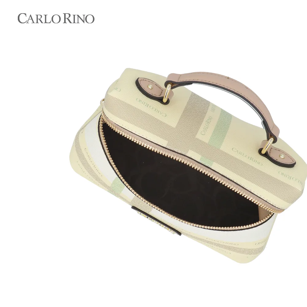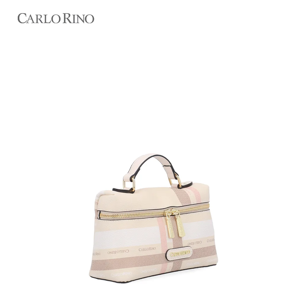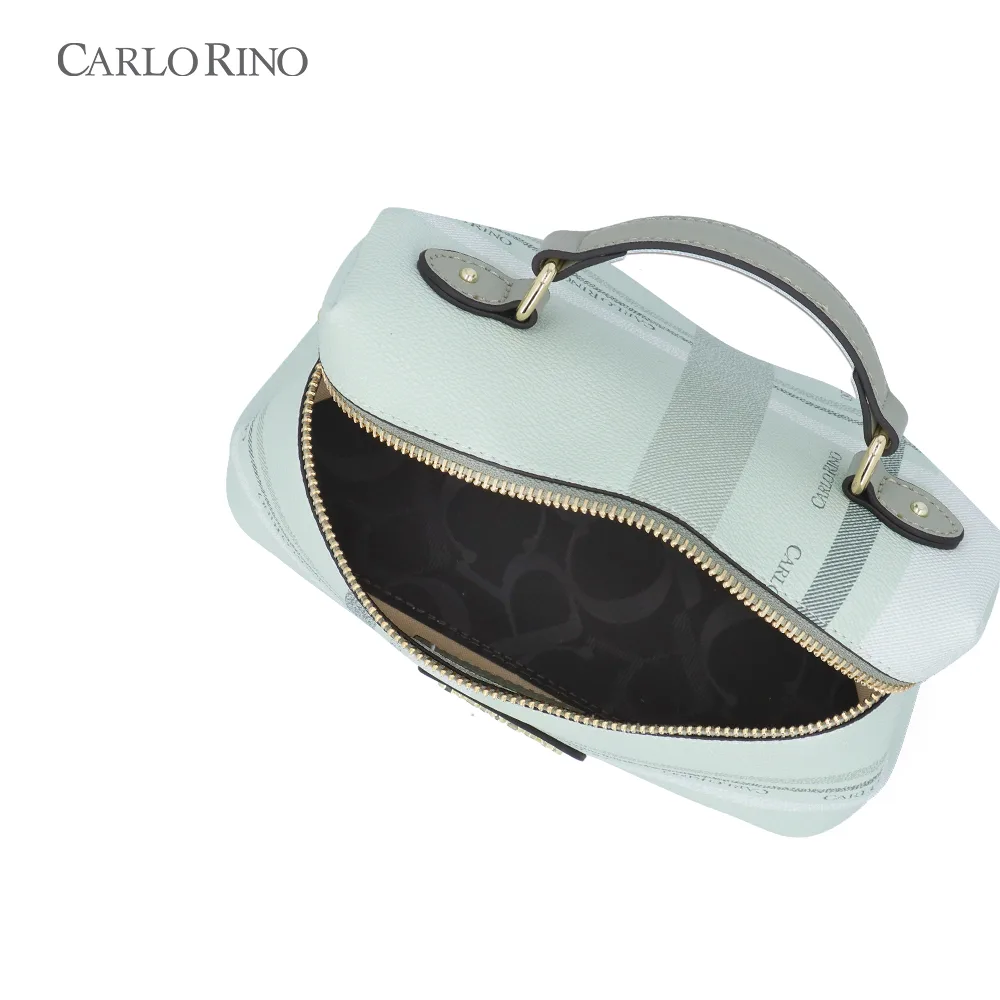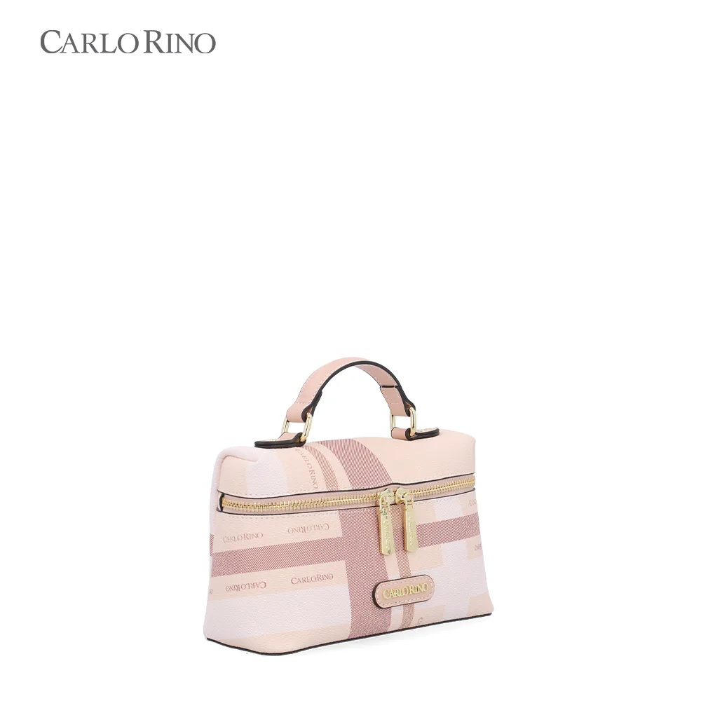 A structured box bag crafted from signature printed coated canvas, finished with a pastel-toned checkered pattern. Designed with a firm silhouette and a detachable long strap for polished day-to-night styling.