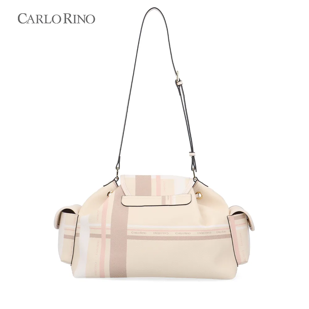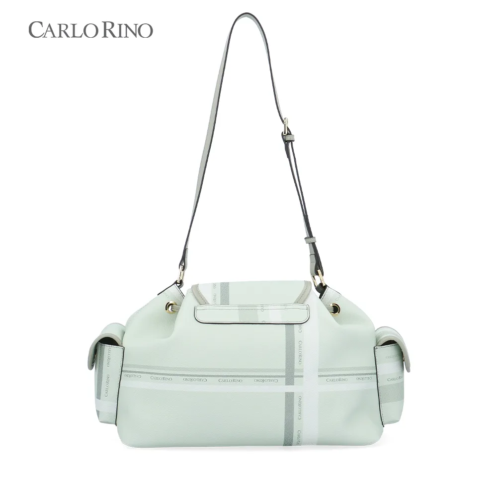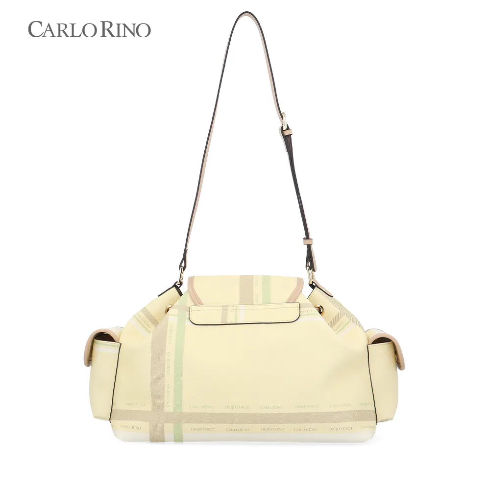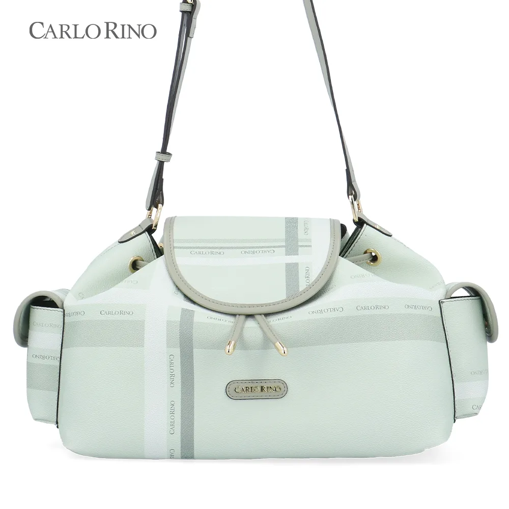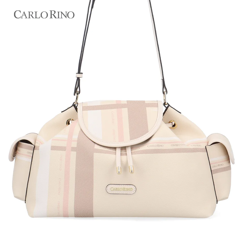 A large, more spacious cargo bag, featuring the same pastel checkered coated canvas design. Ideal for everyday carry, with ample interior space and practical side compartments.