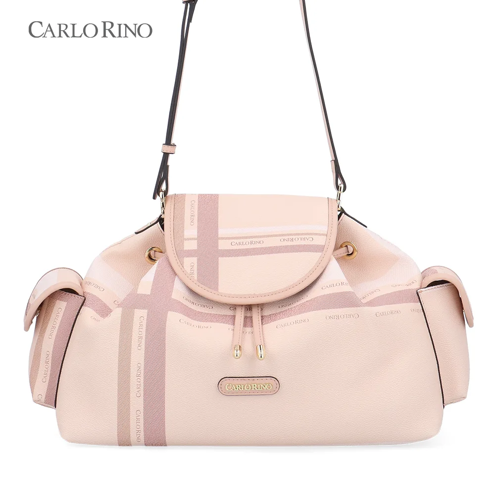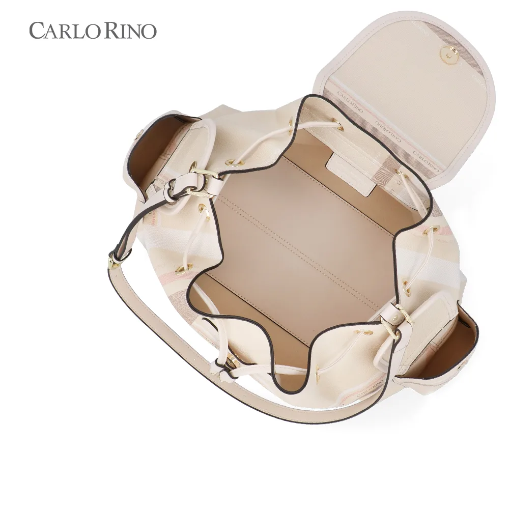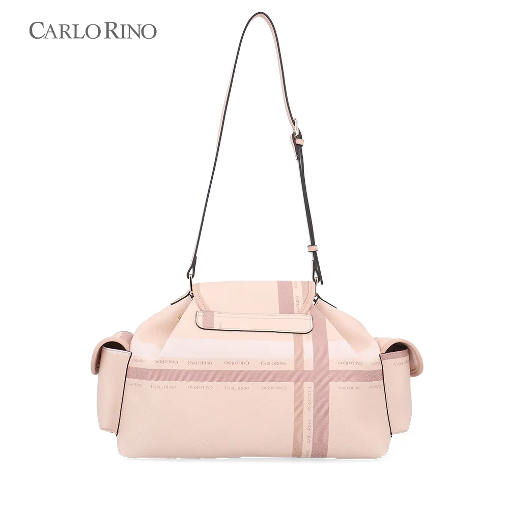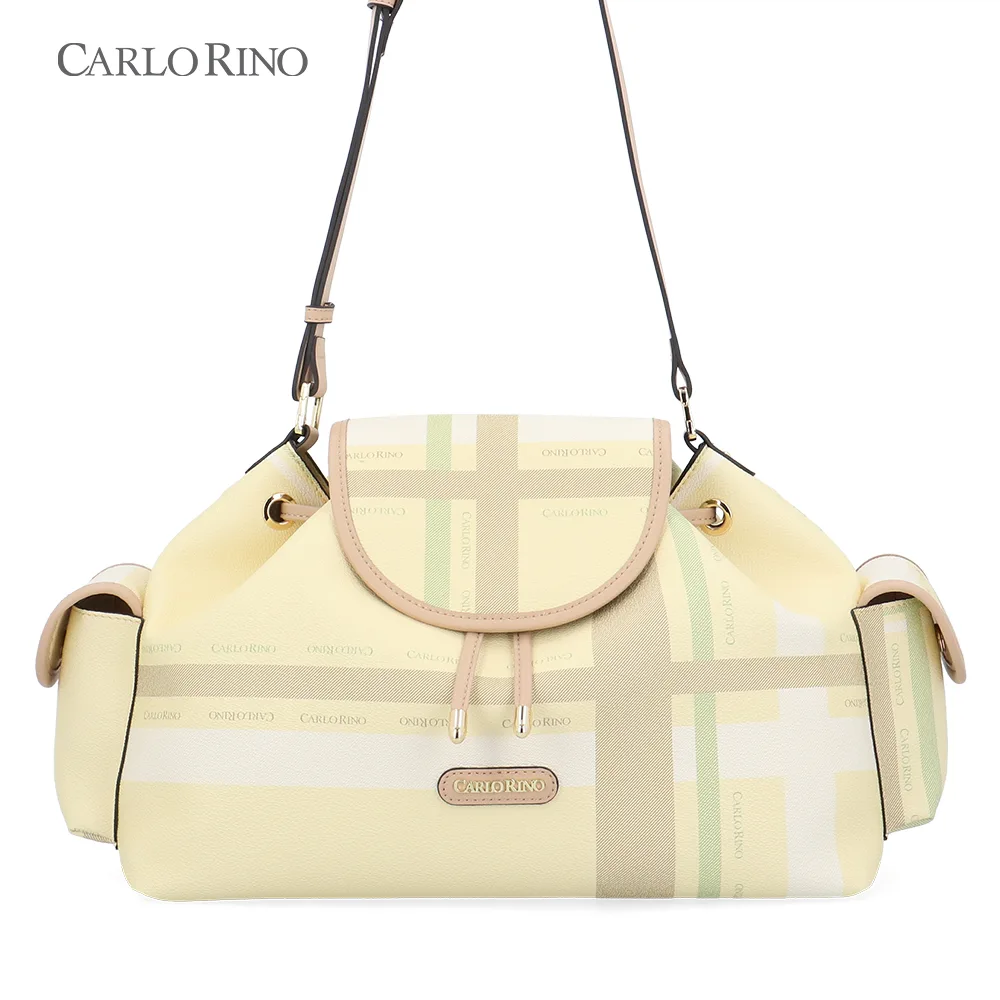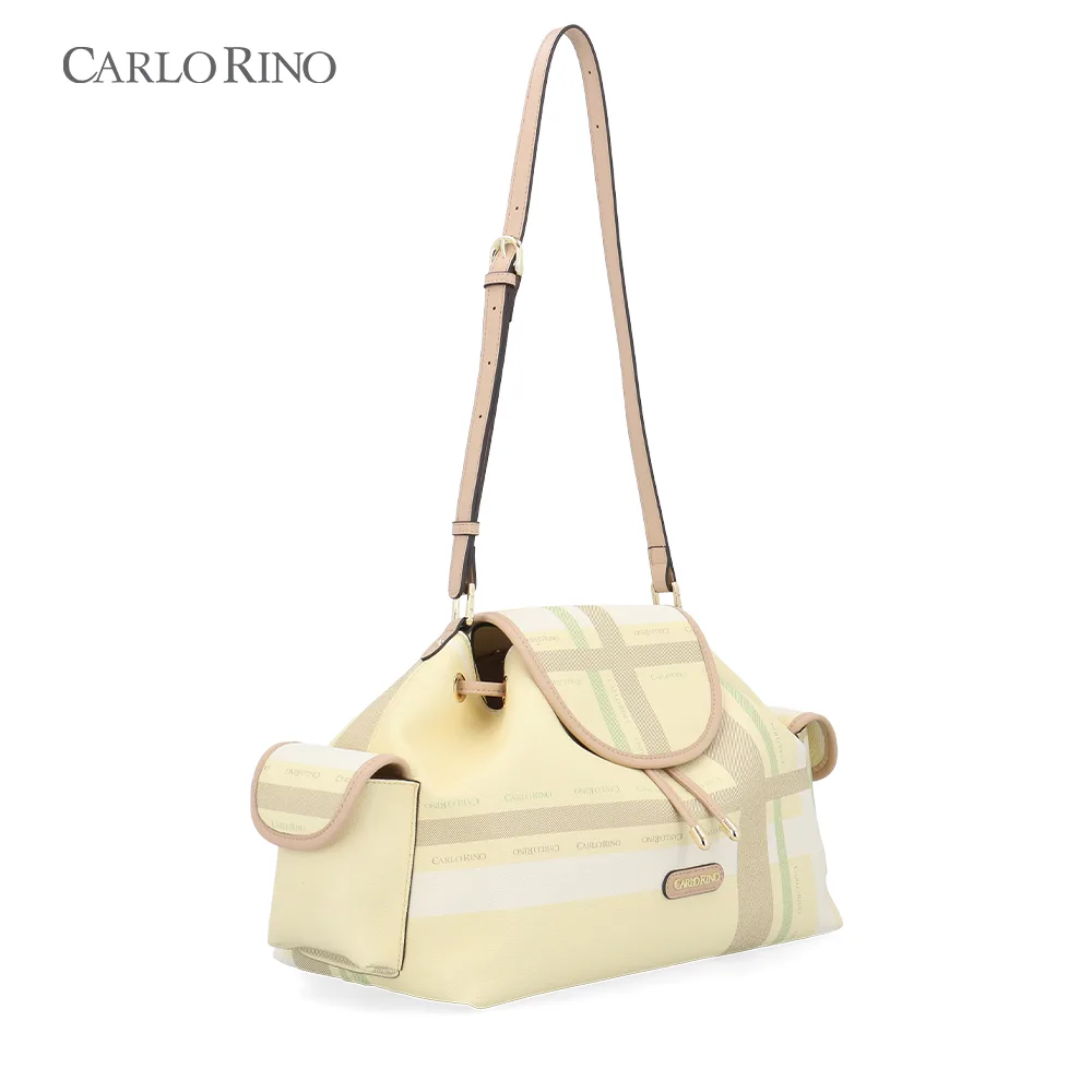 A large, more spacious cargo bag, featuring the same pastel checkered coated canvas design. Ideal for everyday carry, with ample interior space and practical side compartments.