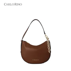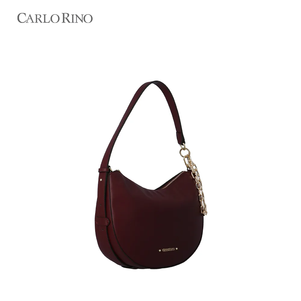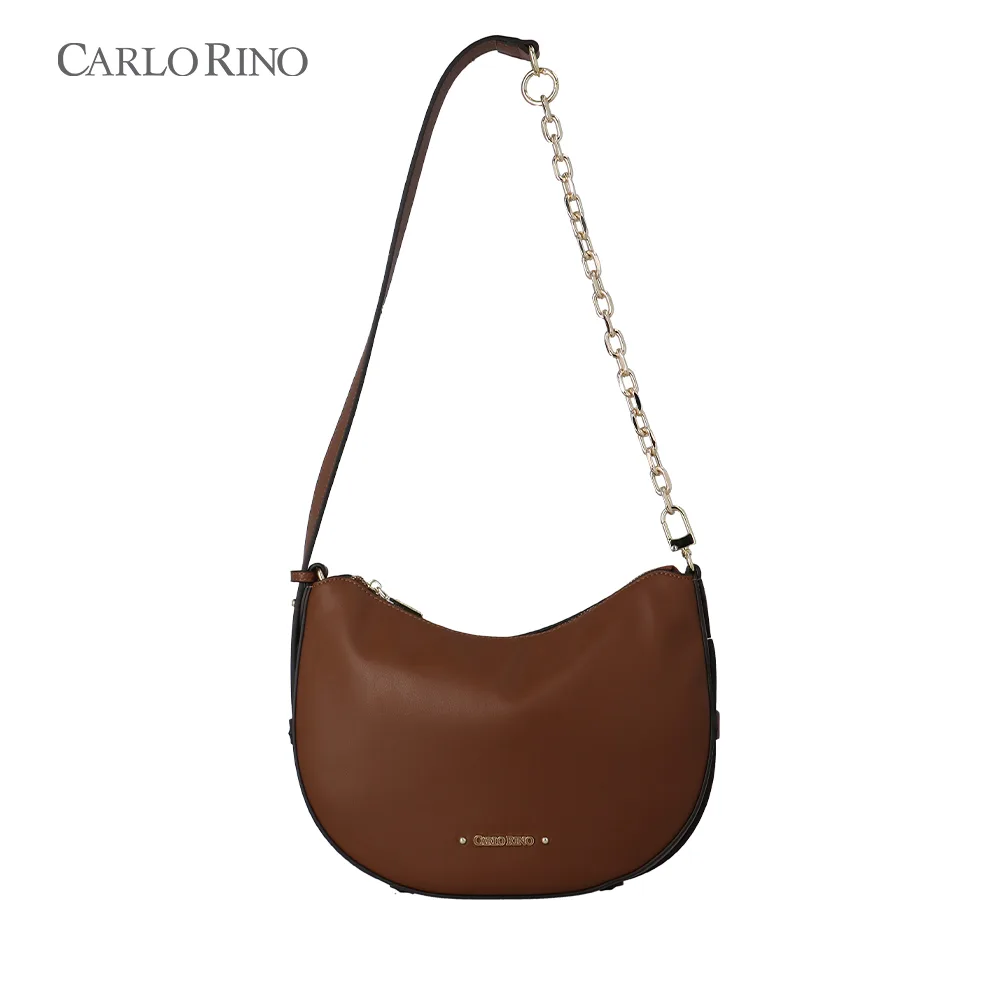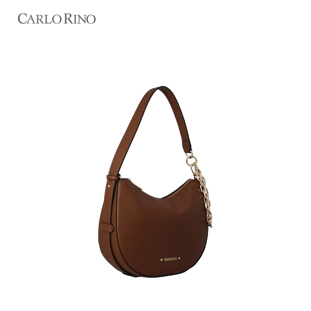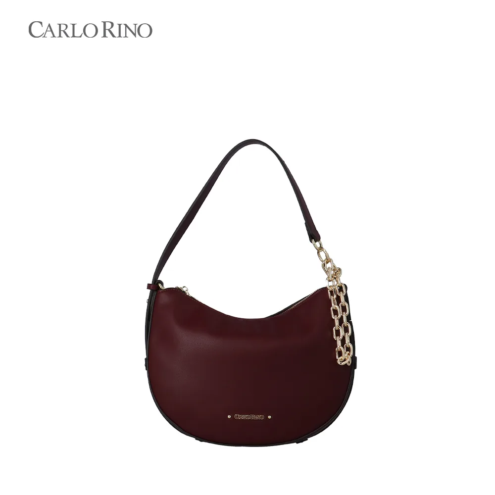 A soft-structured shoulder bag crafted from smooth synthetic leather and finished with a modern dangling chain detail. Available in five muted colours, it’s designed to switch effortlessly between two carrying styles for everyday versatility.