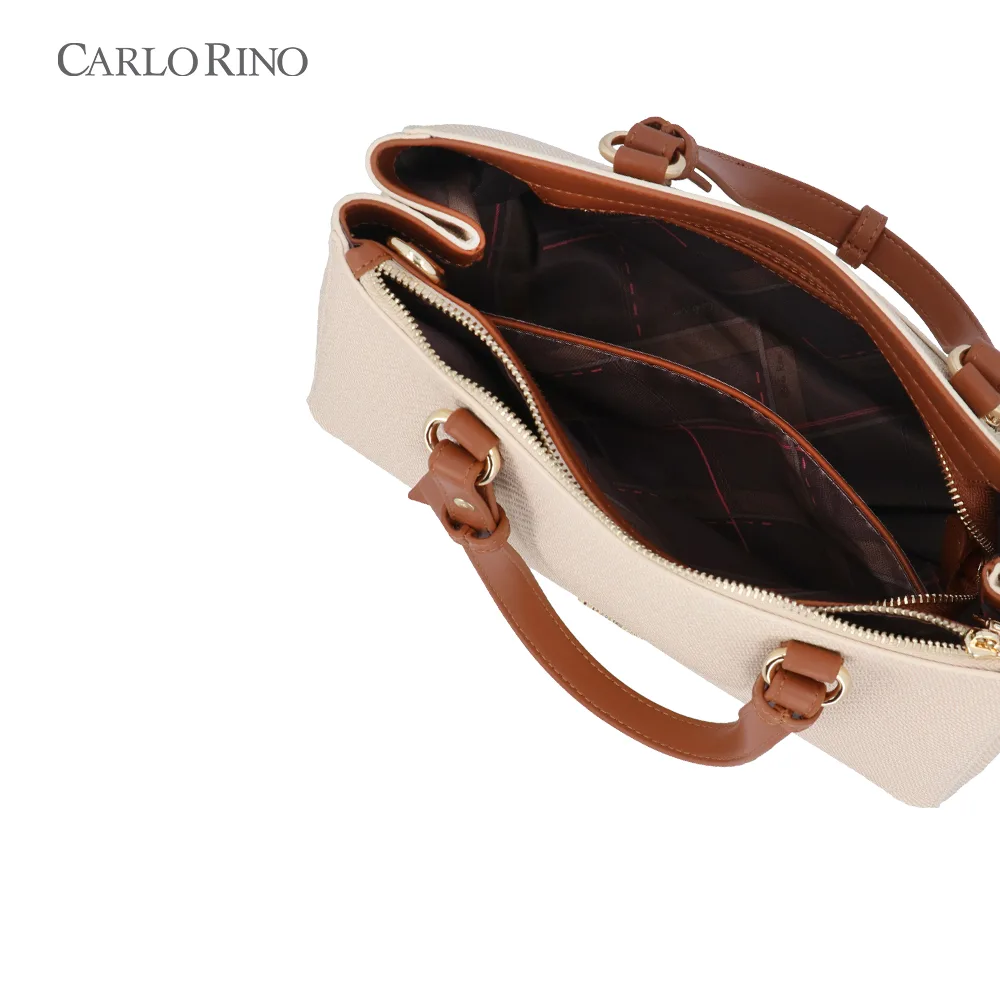 Sophisticated and structured, this textured top handle bag with dark brown accents and a decorative zipper elevates any everyday ensemble.